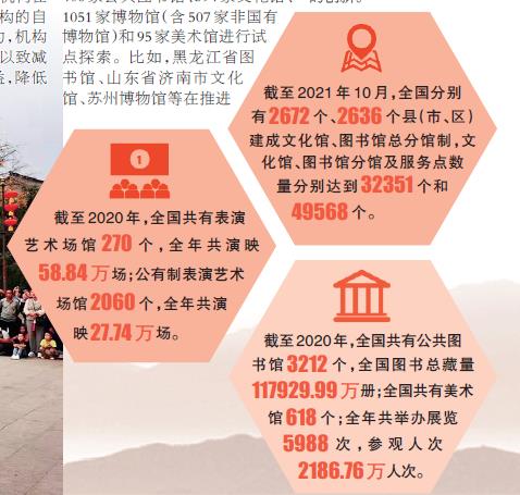 近年來,各地結(jié)合決勝脫貧攻堅(jiān)、推動(dòng)鄉(xiāng)村振興和新時(shí)代文明實(shí)踐中心建設(shè),加快完善基層公共文化設(shè)施網(wǎng)絡(luò),特別是一些中西部省份,在歷史欠賬較多、經(jīng)濟(jì)下行壓力大的情況下,拿出真金白銀推進(jìn)改革。截至2020年年底,全國已建成村、社區(qū)綜合性文化服務(wù)中心57萬多個(gè),基本實(shí)現(xiàn)全覆蓋。