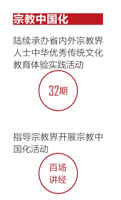 山東不斷創(chuàng)新探索宗教中國化的形式和內(nèi)容,教育引導(dǎo)宗教界人士和信教群眾培育和踐行社會主義核心價值觀、弘揚中華優(yōu)秀傳統(tǒng)文化,不斷增進“五個認(rèn)同”。加強理論研究,發(fā)揮儒家文化發(fā)祥地和紅色文化富集地優(yōu)勢,成立山東省民族宗教研究會、山東宗教界優(yōu)秀傳統(tǒng)文化教育實踐基地,先后舉辦“儒學(xué)與宗教中國化”研討會、宗教中國化座談會等活動。強化教育引導(dǎo),陸續(xù)承辦了32期省內(nèi)外宗教界人士中華優(yōu)秀傳統(tǒng)文化教育體驗實踐活動,指導(dǎo)宗教界開展了宗教中國化“百場講經(jīng)”活動,常態(tài)化抓好宗教場所“四進”活動,努力推動宗教教義與齊魯文化有機融合,取得了春風(fēng)化雨、潤物無聲的良好效果。