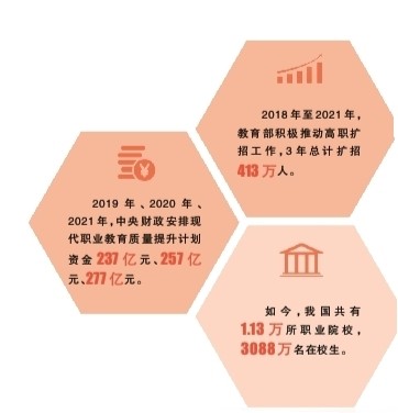 服務地方發(fā)展,還有實打實的數(shù)字支撐。2019年高職擴招116.5萬人、2020年高職擴招157.4萬人、2021年高職擴招139.4萬人,他們中有退役軍人、下崗失業(yè)人員、農民工。高職擴招為社會培養(yǎng)高素質技術技能人才的同時,也有效緩解了嚴峻的就業(yè)形勢。