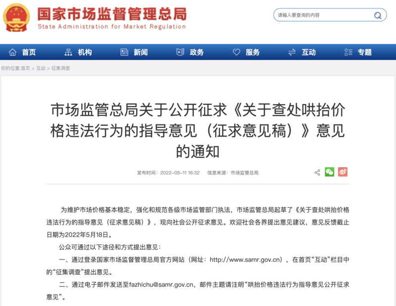目前,《征求意見(jiàn)稿》全文已在市場(chǎng)監(jiān)管總局官網(wǎng)發(fā)布,意見(jiàn)反饋截止日期為2022年5月18日。
