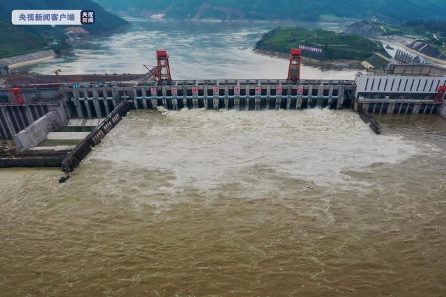 在大藤峽水利樞紐工程現(xiàn)場(chǎng),21個(gè)泄水閘門(mén)中已抬起敞開(kāi)泄洪,出庫(kù)流量由9000立方米/秒加大至17000立方米/秒,降低壩面水位至汛限水位47.6米以下,保證工程防汛安全。