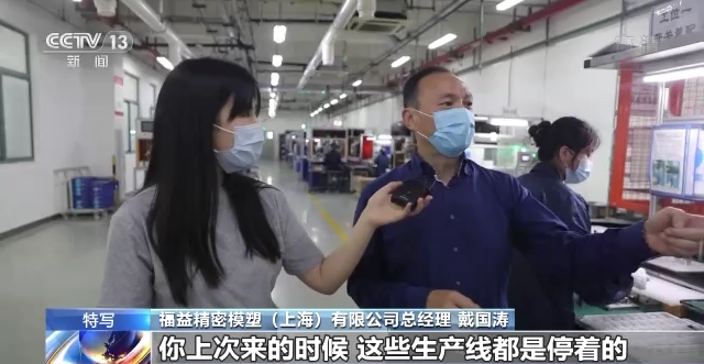 福益精密模塑(上海)有限公司總經(jīng)理 戴國濤:我們得到了政府部門的大力支持,從目前來看,我們的生產(chǎn)恢復(fù)還是非???。我們6月1日早上人進來,然后到晚班的時候我們已經(jīng)100%恢復(fù)了。