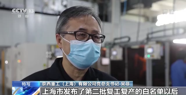 京西重工(上海)有限公司黨總支書記 吳非:上海市發(fā)布了第二批復(fù)工復(fù)產(chǎn)的白名單以后,政府及時地跟公司進行對接,整個上海對企業(yè)的復(fù)工復(fù)產(chǎn)可以說是上報一批就及時地批復(fù)了一批。