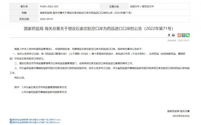 國家藥監(jiān)局、海關(guān)總署:增設(shè)石家莊航空口岸為藥品進(jìn)口口岸