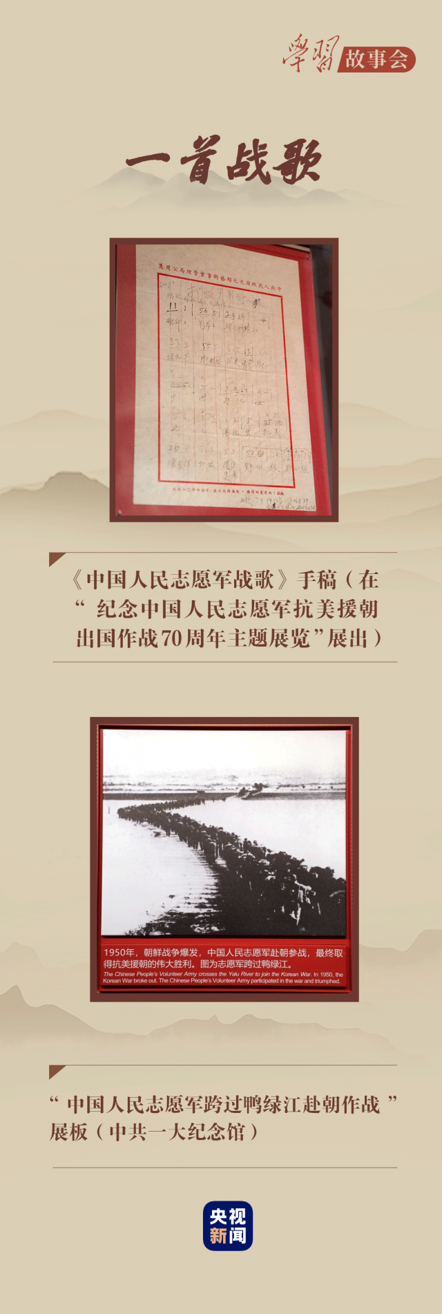 著名音樂家周巍峙在《人民日?qǐng)?bào)》上看到這首詩歌后,僅用半個(gè)小時(shí)就譜出了曲子。猶如火把照亮前方的路,《中國人民志愿軍戰(zhàn)歌》自此響徹朝鮮戰(zhàn)場。