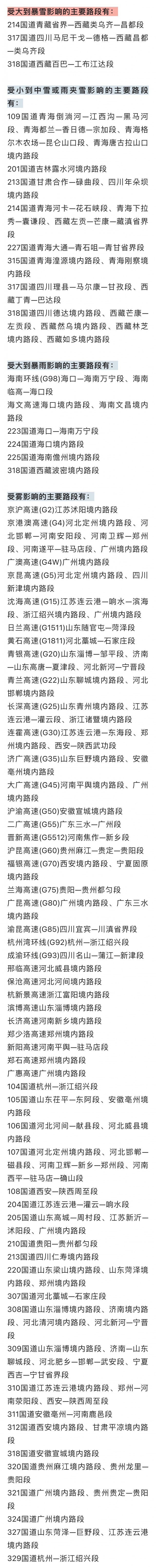 交通運(yùn)輸部:多條道路受降雪、降雨等天氣影響