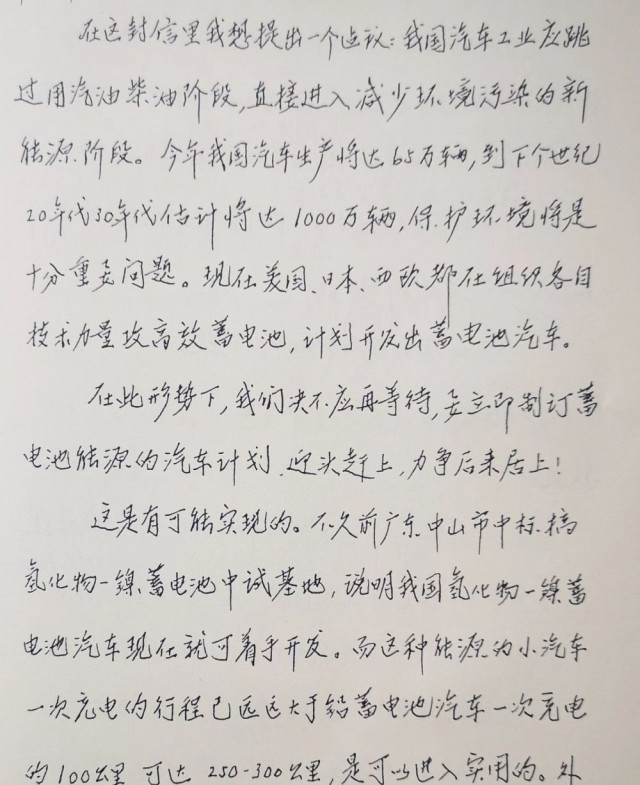 信中說,“在此形勢(shì)下,我們絕不應(yīng)再等待,要立即制訂蓄電池能源的汽車計(jì)劃,迎頭趕上,力爭(zhēng)后來居上。”