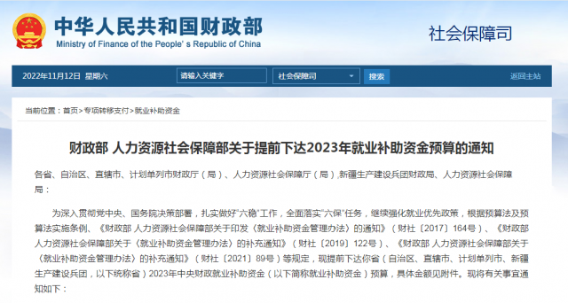 財(cái)政部、人社部10日發(fā)布《關(guān)于提前下達(dá)2023年就業(yè)補(bǔ)助資金預(yù)算的通知》,提前下達(dá)資金達(dá)432.3億元。
