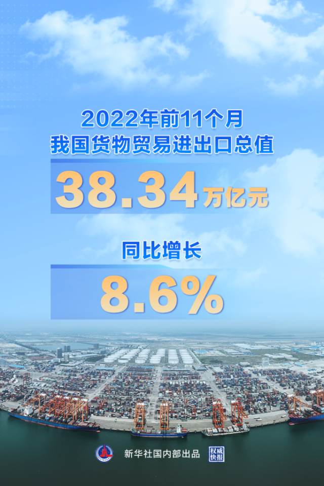 前11個月我國貨物貿(mào)易進(jìn)出口同比增長8.6%