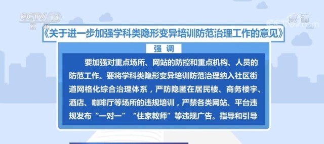 央視網(wǎng)消息:近日,教育部辦公廳等十二部門聯(lián)合印發(fā)了《關(guān)于進(jìn)一步加強學(xué)科類隱形變異培訓(xùn)防范治理工作的意見》?!兑庖姟芬?,到2024年6月,全面清除隱形變異培訓(xùn)。