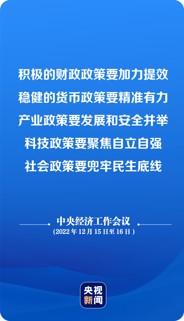 中央經濟工作會議要求,明年要堅持穩(wěn)字當頭、穩(wěn)中求進,繼續(xù)實施積極的財政政策和穩(wěn)健的貨幣政策,加大宏觀政策調控力度,加強各類政策協(xié)調配合,形成共促高質量發(fā)展合力。