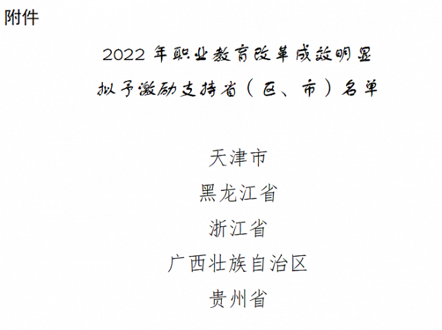 教育部公示2022年職業(yè)教育改革成效明顯擬予激勵支持?。▍^(qū)、市)名單