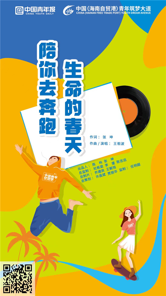 《生命的春天陪你去奔跑》就是這樣一首送給全國青年朋友的MV。這首MV由中國青年報(bào)社、共青團(tuán)海南省委聯(lián)合出品,團(tuán)海南省委辦公室主任王祖波作曲,一線優(yōu)秀青年代表演唱,平凡人用心創(chuàng)作唱給平凡人聽,希望為家國圓夢創(chuàng)造不平凡的業(yè)績,希望為“中國(海南自貿(mào)港)青年筑夢大道”(以下簡稱“筑夢大道”)插上一起向未來的夢想的翅膀。
