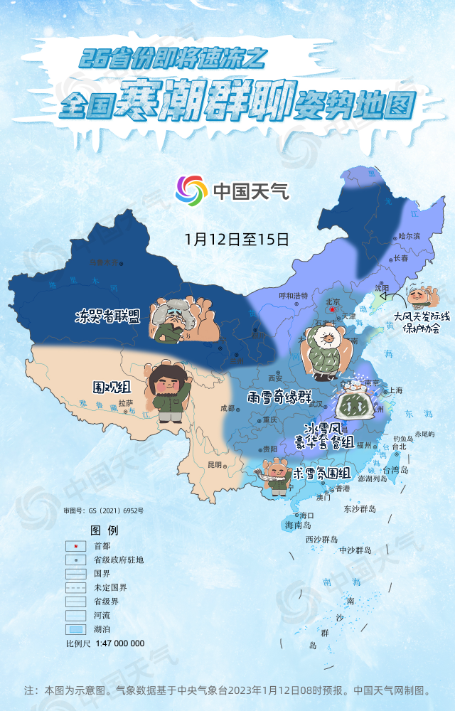 1月12日,2023年首場(chǎng)寒潮已抵達(dá)內(nèi)蒙古一帶,未來幾天將大舉南下橫掃我國(guó)大部,中央氣象臺(tái)已升級(jí)發(fā)布寒潮黃色預(yù)警,約26省區(qū)市即將加入寒潮群聊。哪里將加入“凍哭者聯(lián)盟”?哪里將獲得“冰雪風(fēng)超級(jí)豪華套餐”?哪里與雪無緣默默充當(dāng)“求雪氛圍組”?中國(guó)天氣網(wǎng)推出全國(guó)寒潮群聊姿勢(shì)地圖,請(qǐng)各位對(duì)號(hào)入座掃碼進(jìn)群!