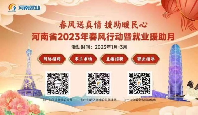河南省通過“1+6省際勞務(wù)協(xié)作聯(lián)盟”平臺鋪路、省級專場活動高位引領(lǐng)、“四進(jìn)”就業(yè)援助服務(wù)保障、線下線上同步直播送崗、零工市場全省聯(lián)動快招等形式,把就業(yè)春風(fēng)送到群眾身邊?;顒悠陂g,計(jì)劃組織1.6萬家企業(yè),舉辦2500場招聘活動,發(fā)布100萬崗位。