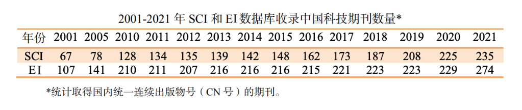 長期以來,與國家科技實力和科研產出水平相比,我國科技期刊發(fā)展相對滯后,國際顯示度偏低。該研究分析顯示,近年來,隨著我國加快高水平科技期刊建設,我國科技期刊的國際影響不斷擴大,被國際重要檢索系統(tǒng)收錄的期刊數量越來越多。2021年,科學引文索引(SCI)收錄中國科技期刊235種;工程索引(EI)收錄中國科技期刊274種;醫(yī)學索引(Medline)收錄中國科技期刊147種。