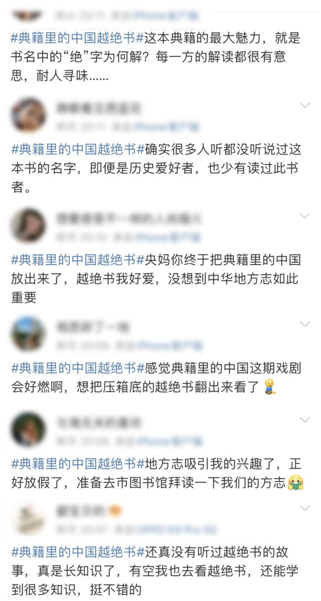 節(jié)目播出后,網(wǎng)友們對《越絕書》一集講述的“方志里的中國”倍感驚喜。這部在網(wǎng)友口中“即便是歷史愛好者也少有讀過”,卻被很多學(xué)者譽(yù)為“地方志鼻祖”的奇書,伴著舞臺光影穿梭時(shí)空,重新走進(jìn)了大家的視野。