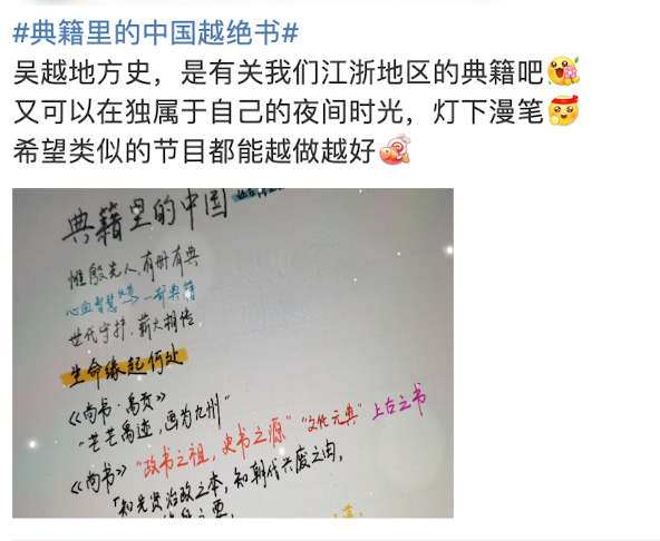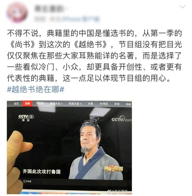 節(jié)目組也強(qiáng)調(diào),希望從“不那么百科全書式的典籍”出發(fā),在節(jié)目中展現(xiàn)一些“小眾”典籍,更重要的是因?yàn)槠湓谒枷肷系摹坝腥菽舜蟆?。例如《越絕書》保存了先秦時(shí)期許多珍貴史料,為研究這一時(shí)代的社會歷史提供了一個(gè)重要的基點(diǎn),是探索吳越地區(qū)文化及其精神形態(tài)變遷的關(guān)鍵典籍和重要對象。