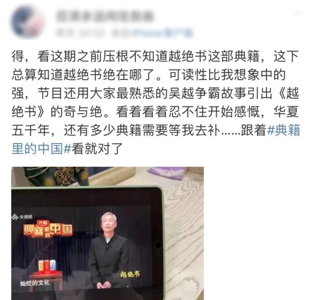 大學(xué)時(shí)讀的這部書,令總臺臺長記憶深刻。在提議策劃推出《典籍里的中國》第二季時(shí),臺長建議關(guān)注《越絕書》這個(gè)選題。古越人絕地求生、奮斗不息的精神,值得今人傳承弘揚(yáng)!