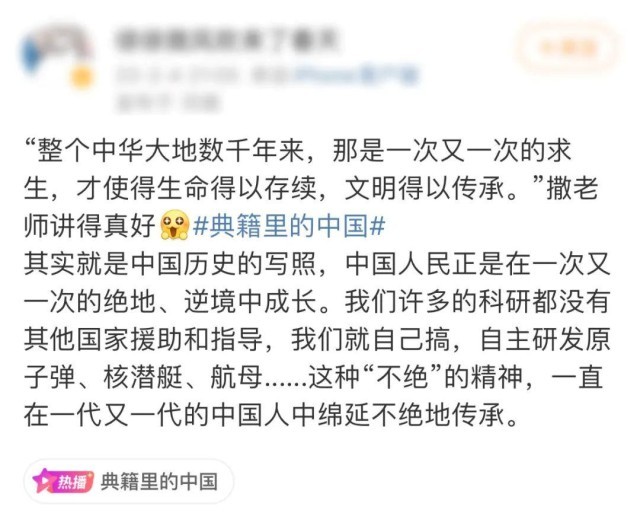節(jié)目成功傳遞了杰出典籍蘊(yùn)含的精神內(nèi)核和文化靈魂,激發(fā)了觀眾內(nèi)心對中華民族優(yōu)秀傳統(tǒng)文化的認(rèn)同。