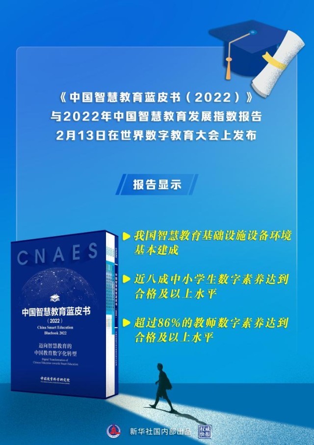 2月13日,在教育部與中國聯(lián)合國教科文組織全國委員會舉辦的世界數(shù)字教育大會上,《中國智慧教育藍(lán)皮書(2022)》與2022年中國智慧教育發(fā)展指數(shù)報告發(fā)布。