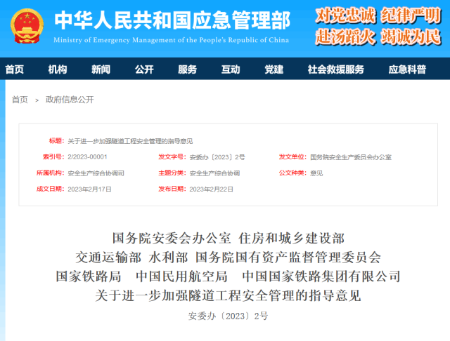 央視網(wǎng)消息:據(jù)應急管理部網(wǎng)站消息,國務院安委會辦公室等八部門發(fā)布關于進一步加強隧道工程安全管理的指導意見。全文如下: