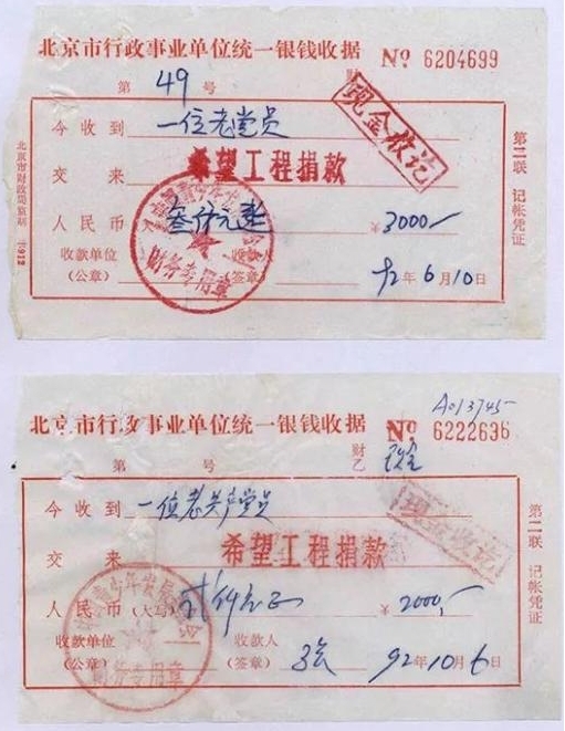 1990年9月5日,鄧小平同志為“希望工程”題名,其后兩次以“一位老共產(chǎn)黨員”的名義向希望工程捐款。
