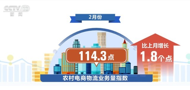 另外,農(nóng)村電商物流業(yè)務(wù)量連續(xù)增長。2月份,農(nóng)村電商物流業(yè)務(wù)量指數(shù)為114.3點,比上月增長1.8個點。
