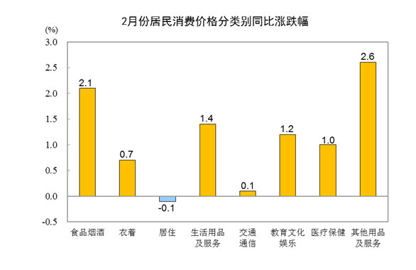 2月份居民消費(fèi)價格同比上漲1.0% 環(huán)比下降0.5%