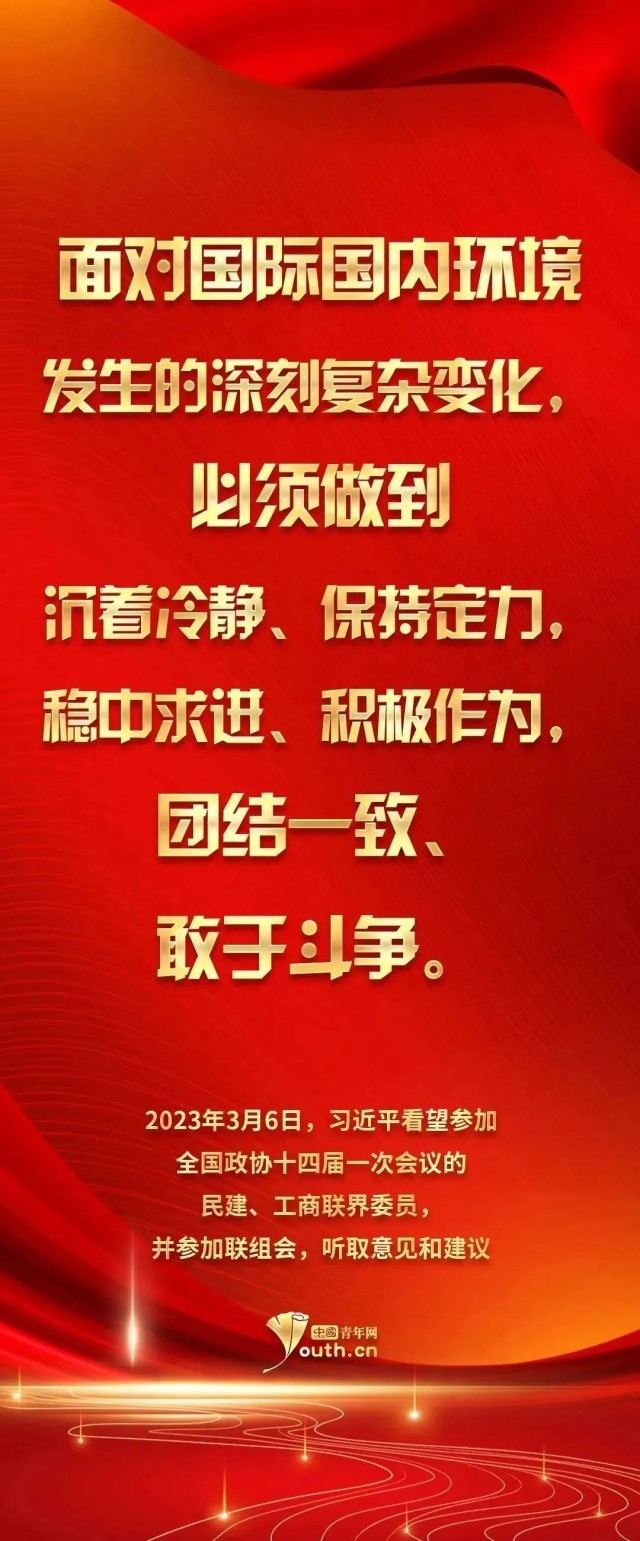 3月6日,中共中央總書(shū)記、國(guó)家主席、中央軍委主席習(xí)近平看望參加全國(guó)政協(xié)十四屆一次會(huì)議的民建、工商聯(lián)界委員,并參加聯(lián)組會(huì),聽(tīng)取意見(jiàn)和建議。