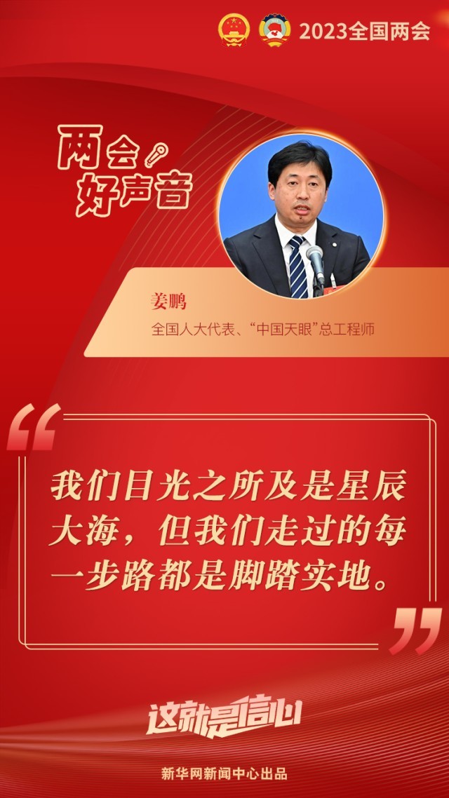 “我們目光之所及是星辰大海,但我們走過的每一步路都是腳踏實地。”7日下午舉行的第二場“代表通道”采訪活動中,全國人大代表、“中國天眼”總工程師姜鵬感慨道。