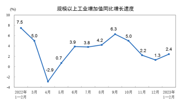 今年前2個(gè)月全國(guó)規(guī)模以上工業(yè)增加值同比增長(zhǎng)2.4%