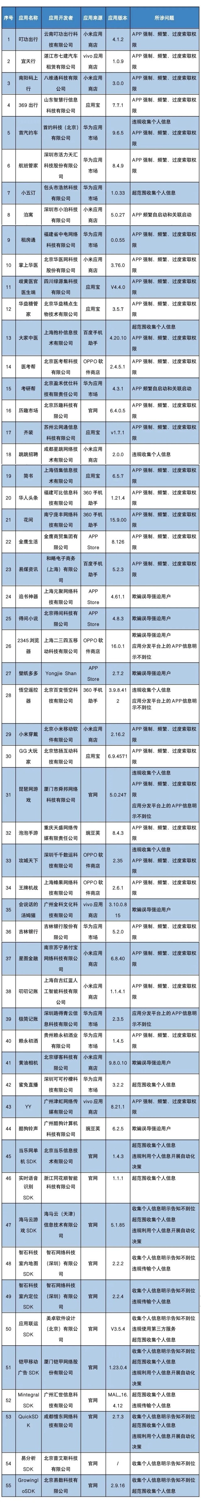 工信部3月21日對(duì)叮功出行、宜天行等55款侵害用戶權(quán)益的移動(dòng)互聯(lián)網(wǎng)應(yīng)用程序(APP)及第三方軟件開發(fā)工具包(SDK)進(jìn)行通報(bào),要求這55款A(yù)PP及SDK按有關(guān)規(guī)定進(jìn)行整改。