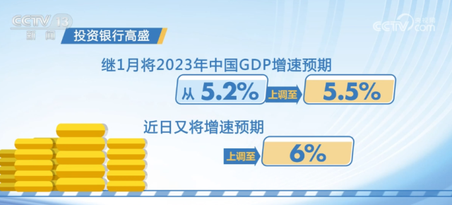 央視網(wǎng)消息:今年以來,國(guó)際機(jī)構(gòu)紛紛上調(diào)中國(guó)經(jīng)濟(jì)增長(zhǎng)預(yù)期。投資銀行高盛繼1月將2023年中國(guó)GDP增速預(yù)期從5.2%上調(diào)至5.5%后,近日又將增速預(yù)期上調(diào)至6%。據(jù)國(guó)際貨幣基金組織測(cè)算,中國(guó)經(jīng)濟(jì)的強(qiáng)勁反彈意味著將在今年貢獻(xiàn)全球經(jīng)濟(jì)增長(zhǎng)的約三分之一,將為世界經(jīng)濟(jì)帶來強(qiáng)勁的拉動(dòng)作用。