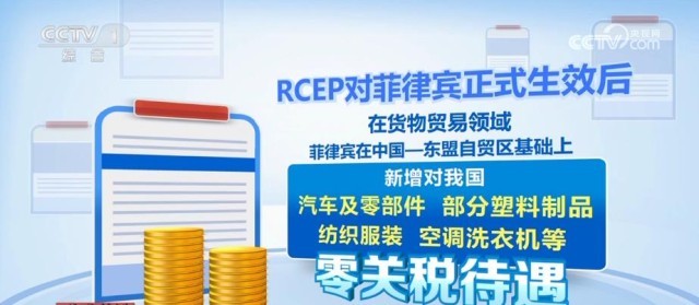 據(jù)了解,我國(guó)是菲律賓最大貿(mào)易伙伴、第一大進(jìn)口來(lái)源地和第三大出口市場(chǎng)。RCEP對(duì)菲律賓正式生效后,在貨物貿(mào)易領(lǐng)域,菲律賓在中國(guó)—東盟自貿(mào)區(qū)基礎(chǔ)上,新增對(duì)我國(guó)汽車及零部件、部分塑料制品、紡織服裝、空調(diào)洗衣機(jī)等,零關(guān)稅待遇。