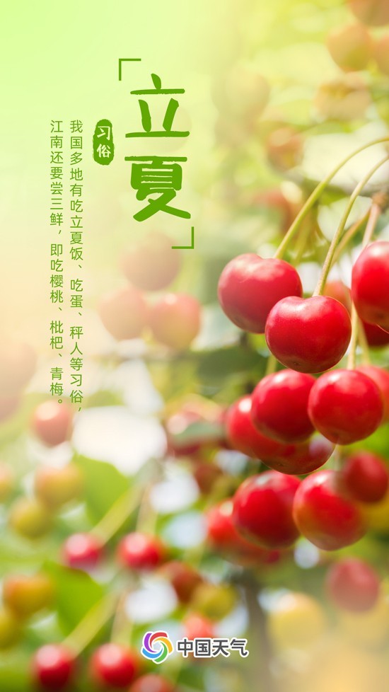 立夏還是品嘗美食的好時(shí)節(jié),許多家庭會(huì)將赤豆、黃豆、黑豆、豌豆、綠豆做成“立夏飯”,寓意“五谷豐登”。江南有“嘗三鮮”的習(xí)俗,即品嘗甜蜜櫻桃、爽口青梅以及清甜枇杷。