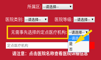 進(jìn)入頁面后,點(diǎn)擊“無需事先選擇的定點(diǎn)醫(yī)療機(jī)構(gòu)”選項(xiàng),選擇“是”。