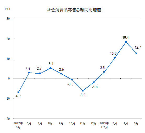 國(guó)家統(tǒng)計(jì)局:今年5月份社會(huì)消費(fèi)品零售總額增長(zhǎng)12.7%
