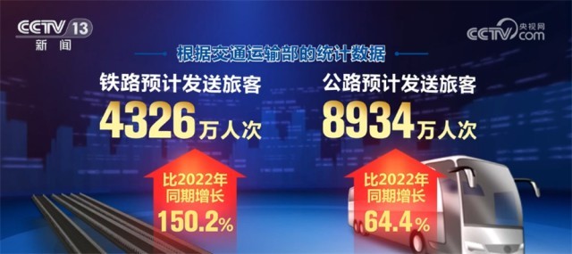 端午假期,全國(guó)鐵路、公路、水路、民航預(yù)計(jì)共發(fā)送旅客14047萬(wàn)人次,比2022年同期增長(zhǎng)89.1%。其中,鐵路預(yù)計(jì)發(fā)送旅客4326萬(wàn)人次,比2022年同期增長(zhǎng)150.2%;公路預(yù)計(jì)發(fā)送旅客8934萬(wàn)人次,比2022年同期增長(zhǎng)64.4%;水路預(yù)計(jì)發(fā)送旅客253萬(wàn)人次,比2022年同期增長(zhǎng)99.3%;民航預(yù)計(jì)發(fā)送旅客534萬(wàn)人次,比2022年同期增長(zhǎng)287%。