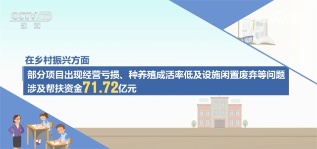 在鄉(xiāng)村振興方面,部分項目出現(xiàn)經(jīng)營虧損、種養(yǎng)殖成活率低及設(shè)施閑置廢棄等問題,涉及幫扶資金71.72億元。