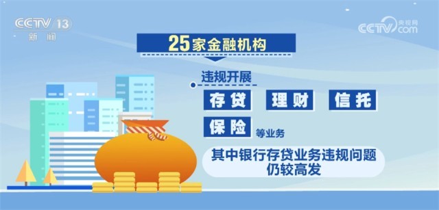 25家金融機構(gòu)違規(guī)開展存貸、理財、信托、保險等業(yè)務(wù),其中銀行存貸業(yè)務(wù)違規(guī)問題仍較高發(fā)。