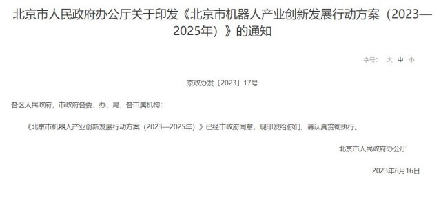 央視網(wǎng)消息:近日,北京市人民政府發(fā)布《北京市機(jī)器人產(chǎn)業(yè)創(chuàng)新發(fā)展行動(dòng)方案(2023—2025年)》。主要內(nèi)容如下: