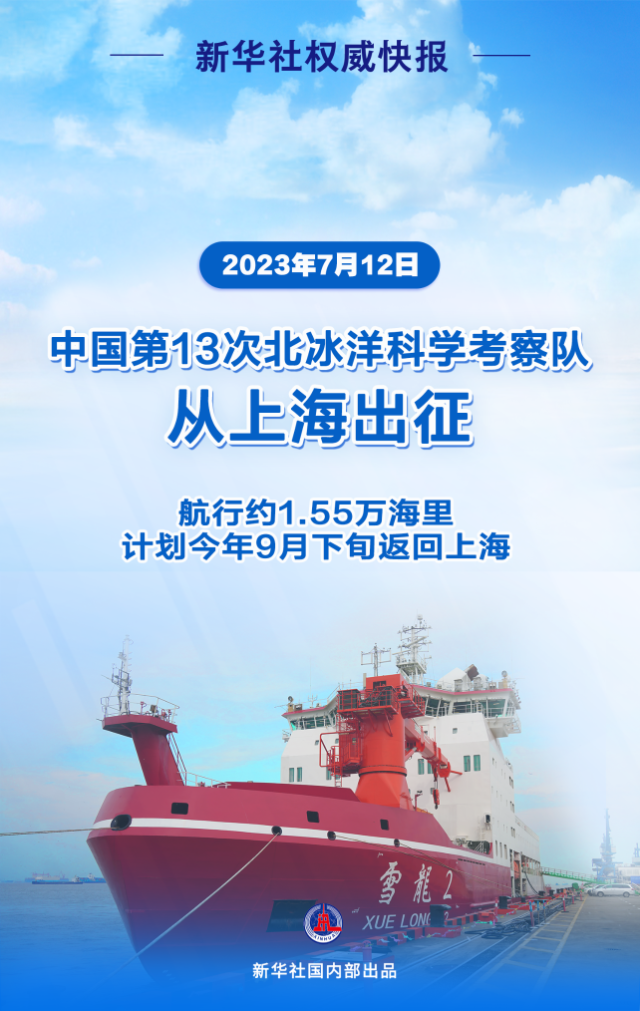 7月12日,由自然資源部組織的中國第13次北冰洋科學(xué)考察隊,乘坐“雪龍2”號極地科考破冰船,從上海出征,前往北冰洋執(zhí)行科學(xué)考察任務(wù)。本次考察預(yù)計總航程約1.55萬海里,計劃今年9月下旬返回上海。