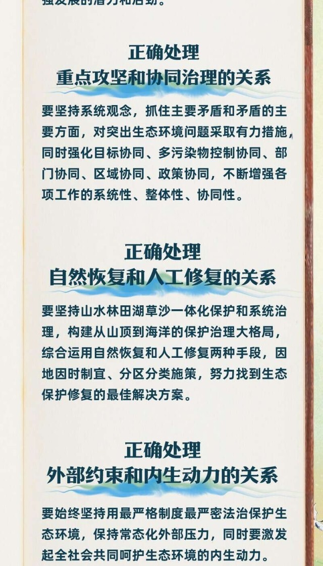 近日召開(kāi)的全國(guó)生態(tài)環(huán)境保護(hù)大會(huì)指出,新時(shí)代生態(tài)文明建設(shè)的成就舉世矚目,成為新時(shí)代黨和國(guó)家事業(yè)取得歷史性成就、發(fā)生歷史性變革的顯著標(biāo)志。同時(shí),生態(tài)文明建設(shè)仍處于壓力疊加、負(fù)重前行的關(guān)鍵期,繼續(xù)譜寫(xiě)新時(shí)代生態(tài)文明建設(shè)新篇章,需要把握好哪些重大關(guān)系,快來(lái)收藏學(xué)習(xí)吧。