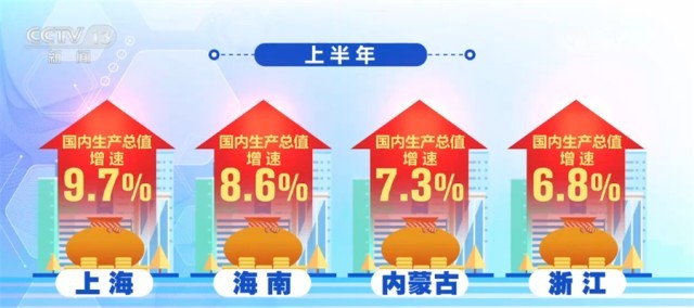 從上半年各省份的國內(nèi)生產(chǎn)總值增速看,江蘇、浙江等15個(gè)省份增速超過全國5.5%的增速,其中,上海、海南、內(nèi)蒙古和浙江等省份增速均在6.8%以上,廣東、江蘇、山東等21個(gè)省份的國內(nèi)生產(chǎn)總值增速超過了各自一季度的增速,經(jīng)濟(jì)增長恢復(fù)勢頭明顯。