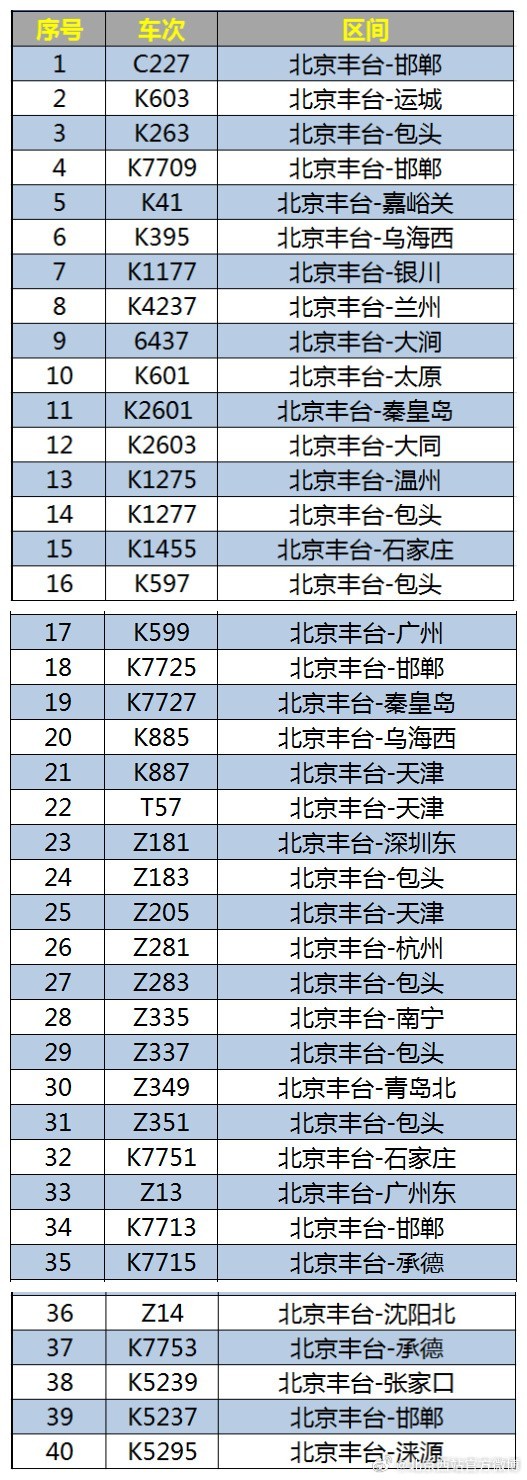 4日北京西站、北京豐臺站部分列車停運,車次查詢