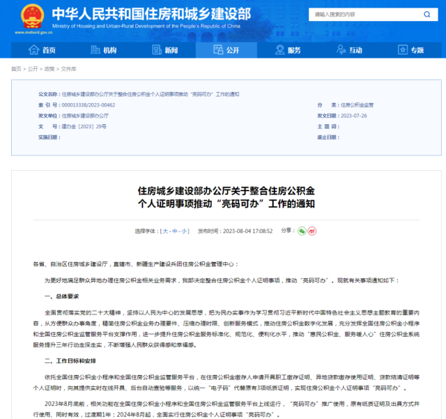 通知提到,2023年8月底前,相關功能在全國住房公積金小程序和全國住房公積金監(jiān)管服務平臺上線運行,“亮碼可辦”推廣使用,原有紙質(zhì)證明及出具方式并行使用、同時有效,過渡期1年;2024年8月起,全面實行住房公積金個人證明事項“亮碼可辦”。通知還提出精簡整合證明材料、調(diào)整證明開具方式、暢通窗口查驗功能、優(yōu)化業(yè)務辦理流程、健全協(xié)同工作機制五項工作任務。