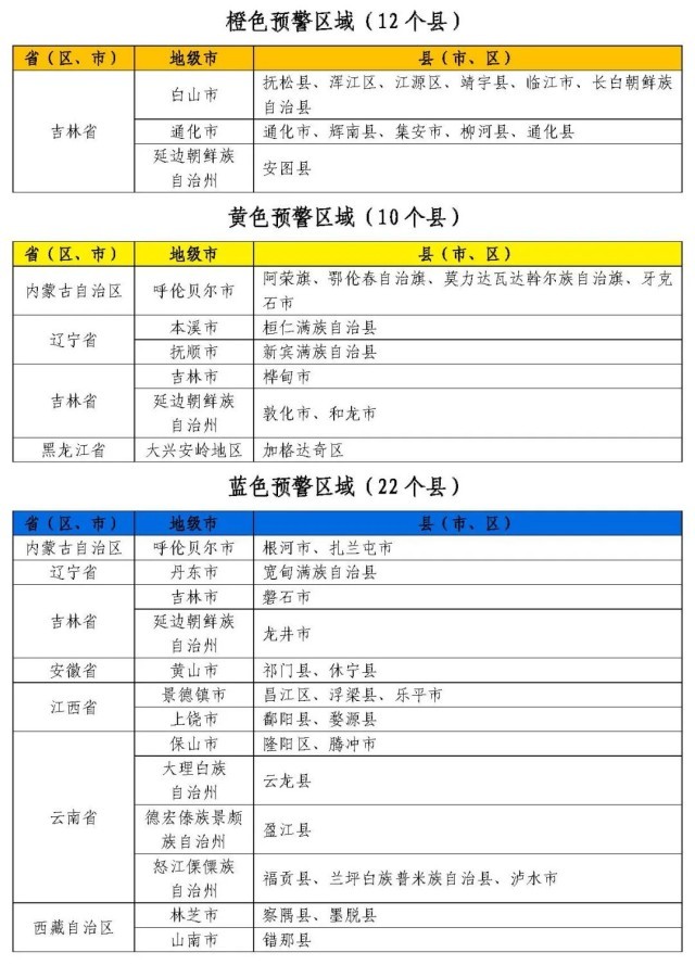 央視網(wǎng)消息:據(jù)“中國水利”公眾號消息,水利部和中國氣象局8月21日18時聯(lián)合發(fā)布橙色山洪災(zāi)害氣象預(yù)警:預(yù)計,8月21日20時至8月22日20時,內(nèi)蒙古東北部、遼寧東部、吉林東南部等地部分地區(qū)發(fā)生山洪災(zāi)害可能性較大(黃色預(yù)警),其中,吉林東南部局地發(fā)生山洪災(zāi)害可能性大(橙色預(yù)警),預(yù)警區(qū)域涉及的縣(市、區(qū))見下表。其他地區(qū)也可能因局地短歷時強(qiáng)降水引發(fā)山洪災(zāi)害,請各地注意做好實時監(jiān)測、防汛預(yù)警和轉(zhuǎn)移避險等防范工作。