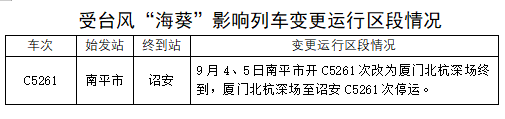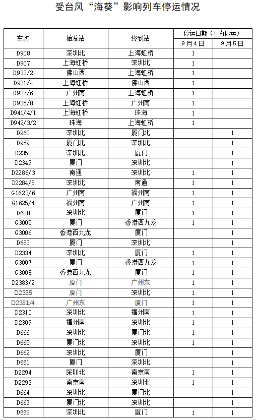受臺(tái)風(fēng)“海葵”影響 鐵路部門(mén)停運(yùn)途經(jīng)杭深鐵路部分旅客列車(chē)