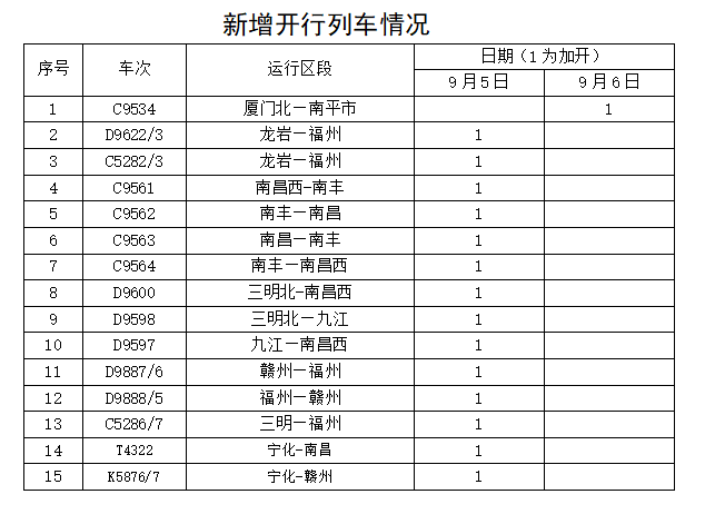 據(jù)中央氣象臺(tái)消息,今年第11號(hào)臺(tái)風(fēng)“??庇诮裉欤?月5日)早晨5點(diǎn)20分前后在福建省東山縣沿海登陸,福建東部部分地區(qū)將有大暴雨,并伴有短時(shí)強(qiáng)降水,局地有雷暴大風(fēng)等強(qiáng)對(duì)流天氣。為防范臺(tái)風(fēng)影響,保障鐵路運(yùn)輸安全,中國(guó)鐵路南昌局集團(tuán)有限公司繼續(xù)調(diào)整部分旅客列車運(yùn)行方案,停運(yùn)管內(nèi)途經(jīng)杭深線福州南至詔安,龍漳線龍巖至漳州,昌福線三明北至福州等區(qū)段旅客列車。同時(shí),加開(kāi)15趟旅客列車,方便旅客出行。